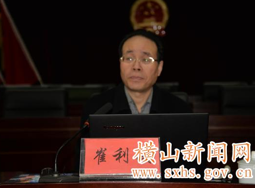 1月13日,横山区举办学习贯彻十八届六中全会精神报告会,特别邀请了省纪委宣传部部长崔利民讲授《关于新形势党内政治生活的若干准则》和《中国共产党党内监督条例》,区委常委、宣传部部长刘克忠主持报告会。在机关的全体区级领导;各乡镇党委书记、乡镇长以及分管纪检、宣传工作的副职;区委和区级国家机关各部门、各人民团体成员和相关事业单位负责同志;区纪委、宣传部、党校全体干部听取了报告会。